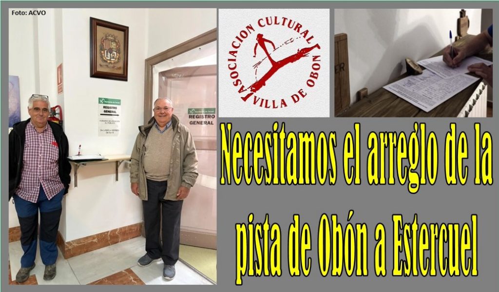 Los vecinos de Obón solicitan a la Diputación el arreglo de la pista a Estercuel, presentando 834 firmas de apoyo en el Registro General.