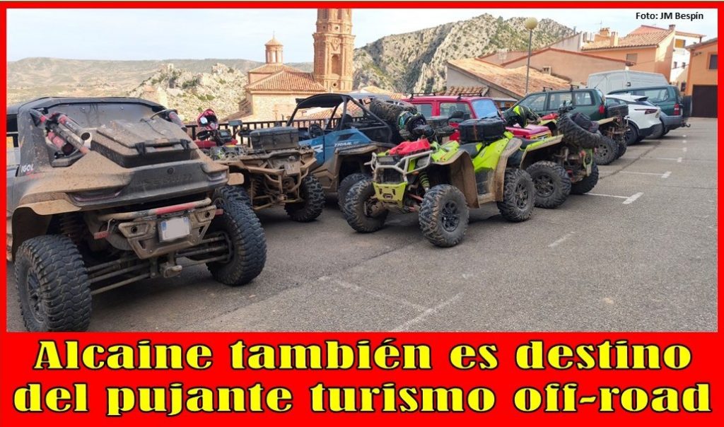 El jueves 13 de noviembre, los habitantes de Alcaine se vieron sorprendidos por la llegada de un grupo de 18 vehículos off-road, que recorrieron varias calles del pueblo y causaron el asombro entre la población (tanto por el ruido de los motores como por la espectacularidad de algunos modelos). Vinieron recorriendo la pista del río Seco, se adentraron en los Estrechos del Hocino (quedaron muestras de alguna derrapada) y subieron al pueblo para tomar un refrigerio.