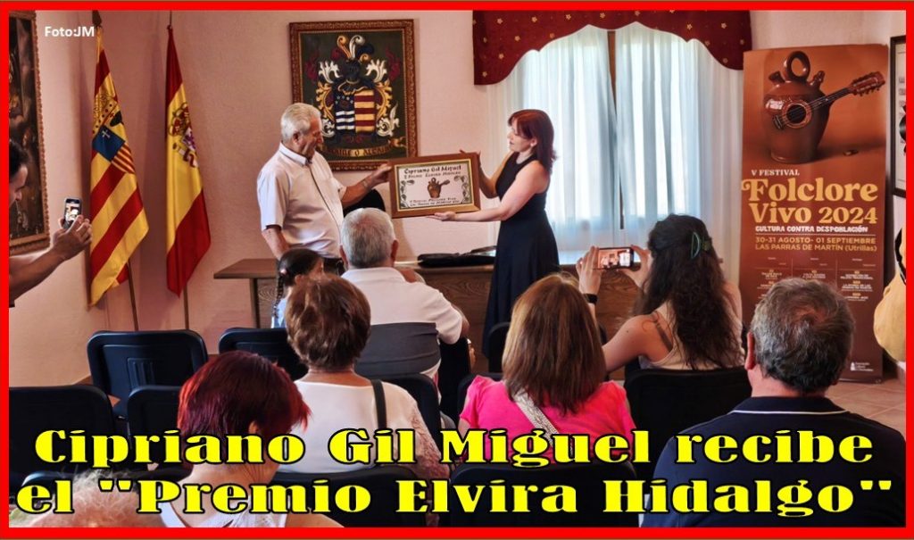 La quinta edición del Festival Folclore Vivo, que se celebró a finales de agosto del año pasado en Las Parras de Martín, instauró una novedad, el premio Elvira Hidalgo, destinado a personas que han hecho una labor destacable por la recuperación de las tradiciones y de la cultura popular relacionada con la música y que con su arte dan visibilidad a la zona y la comarca. El galardón se concedió por primera vez a Cipriano Gil Miguel, que desde Alcaine ha contribuido a conservar y difundir tradiciones en desuso como la construcción de flautas con hueso de buitre, ya que es uno de los pocos en España que mantiene esta tradición. El año pasado no pudo producirse la entrega del premio porque coincidió con fuertes tormentas que imposibilitaron la salida de Alcaine y desplazamiento en coche.