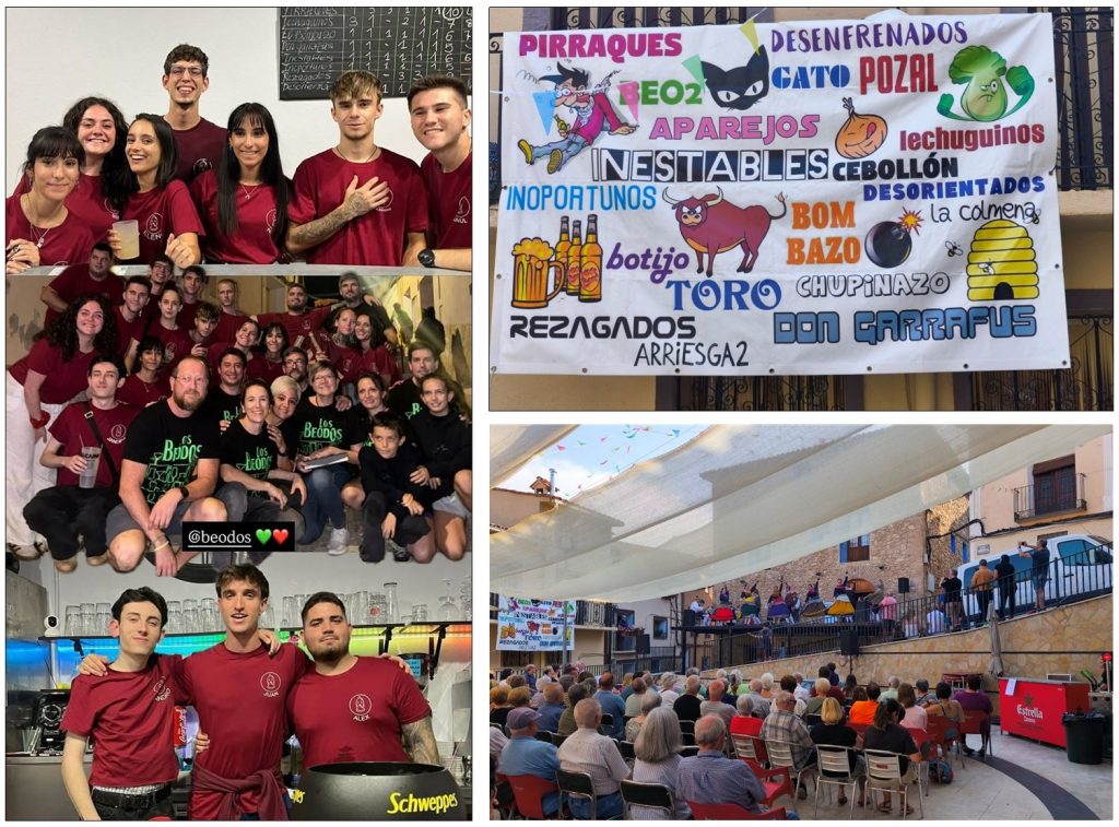 La Comisión de las Fiestas de este año lució, durante varios días una camiseta con el texto: La última y nos vamos. Y es que ésta ha sido su tercera comisión organizadora (2005-2015-2025) y como es tradición a partir de ahora ya quedan exentos de esa tarea. El testigo se lo pasaron en la madrugada del último día de Fiestas a la joven Peña Arriesgados. Es de justicia reconocer el trabajo que han desarrollado la Peña Beo2 que, a pesar de ser pocos, han trabajado intensamente para sacar adelante las actividades durante el año y las Fiestas de agosto. Fiestas que han tenido un amplio abanico de actos para satisfacer a todas las edades. Mención especial merecen las actividades organizadas para los numerosísimos peques: concursos, talleres y carreras pedestres, cencerrada, juegos y parque con hinchables, karts y cañón de espuma, toro de fuego infantil y Diablos, pasacalles y batucada, disco-agua, disfraces y baile del farol.