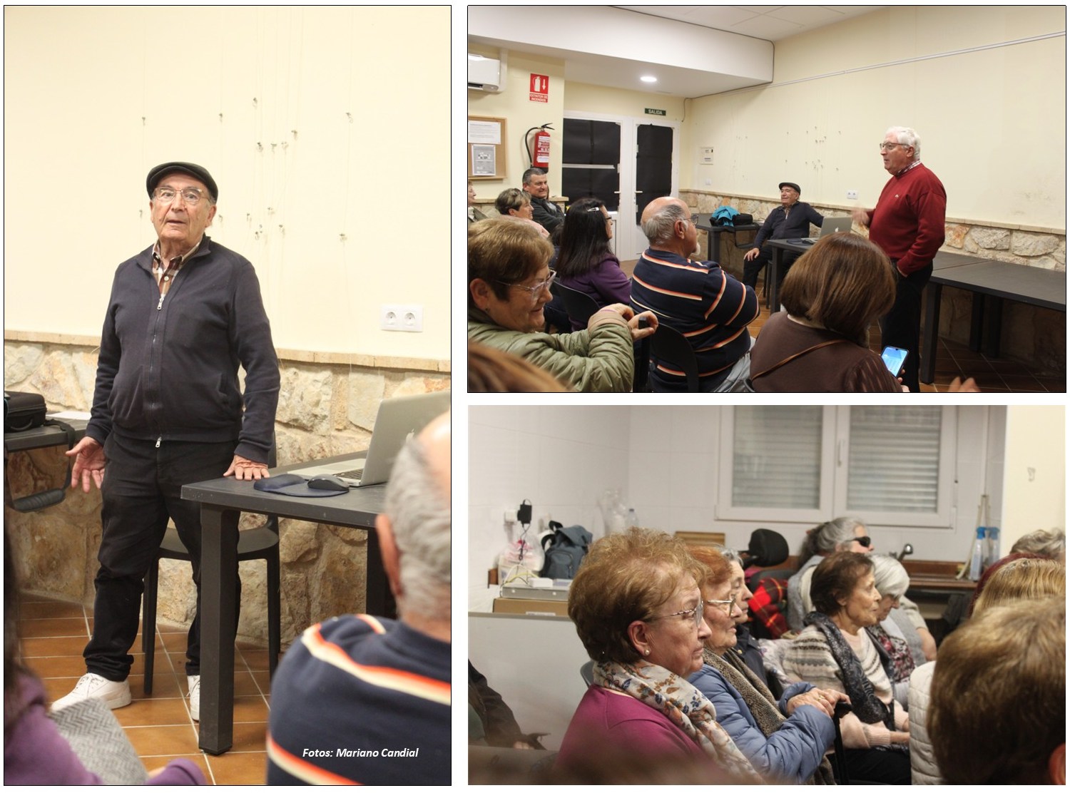 Los presentes siguieron con interés y participación la amena charla, recordando experiencias vividas y reconociendo a personas en las fotografías antiguas.