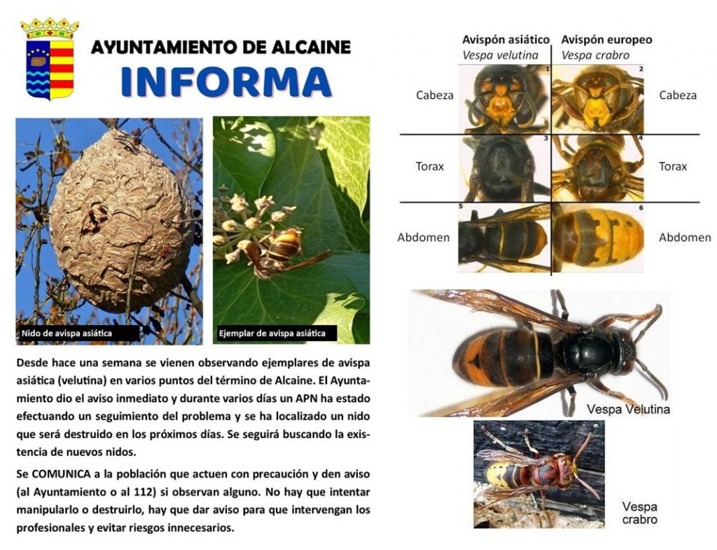 Aviso del Ayuntamiento publicado y diferencias entre avispas europeas y las invasoras asiáticas.